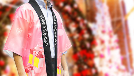 オリジナル半被は飲食店やショップなどのクリスマス企画や、特別感のある年末イベントを彩るコスチュームにも激安製作されています。冬の商品販売キャンペーンをアピールする特注はんてんとしても最適です。