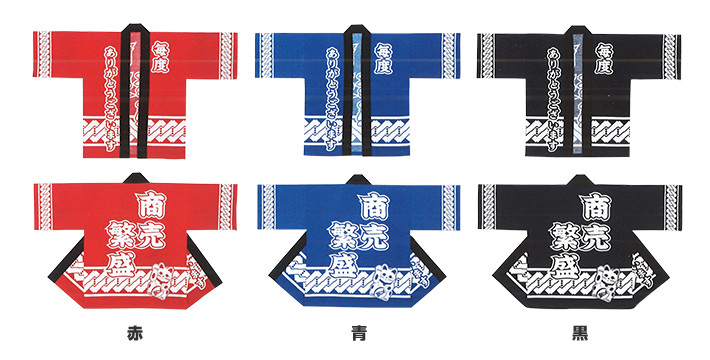 オリジナルの半被を製作したいのだけれど、フルオーダーまでする手間はかけたくない。または、それほどに費用をかけたくもない。というお客様にオススメなのが、こちらのセミオーダータイプです。